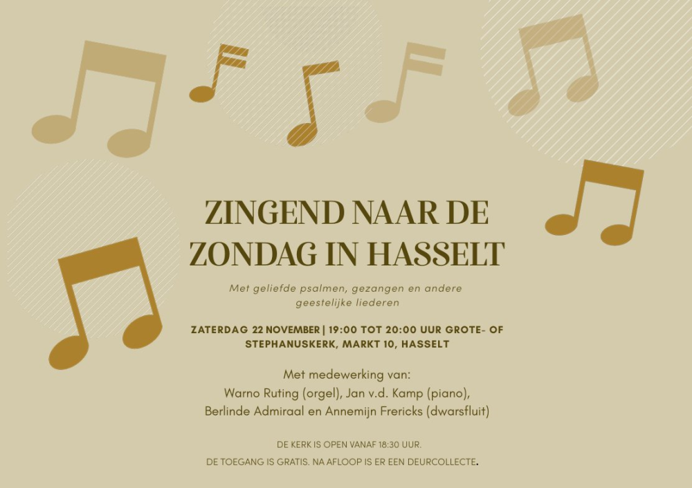 Zingend naar de zondag in HasseltKerk open: 18.30 uurToegang gratis Collecte bij de uitgang Medewerkenden