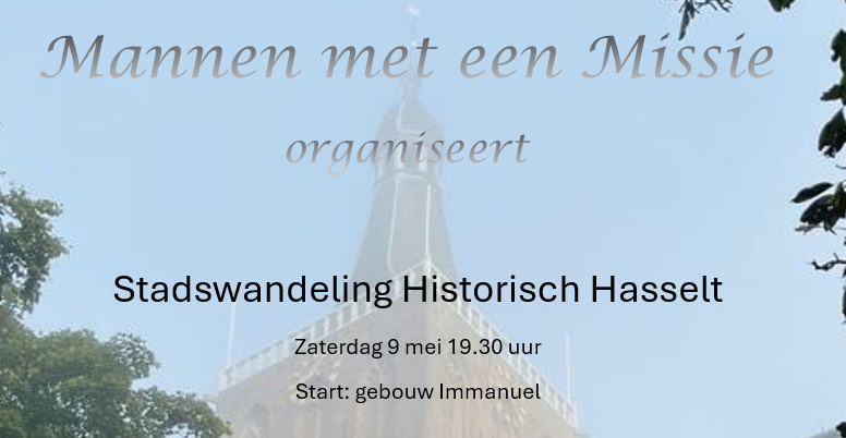 Mannen met een Missie organiseert op zaterdag 9 mei een 'Stadswandeling Historisch Hasselt' met een deskundige gids uit ons midden.