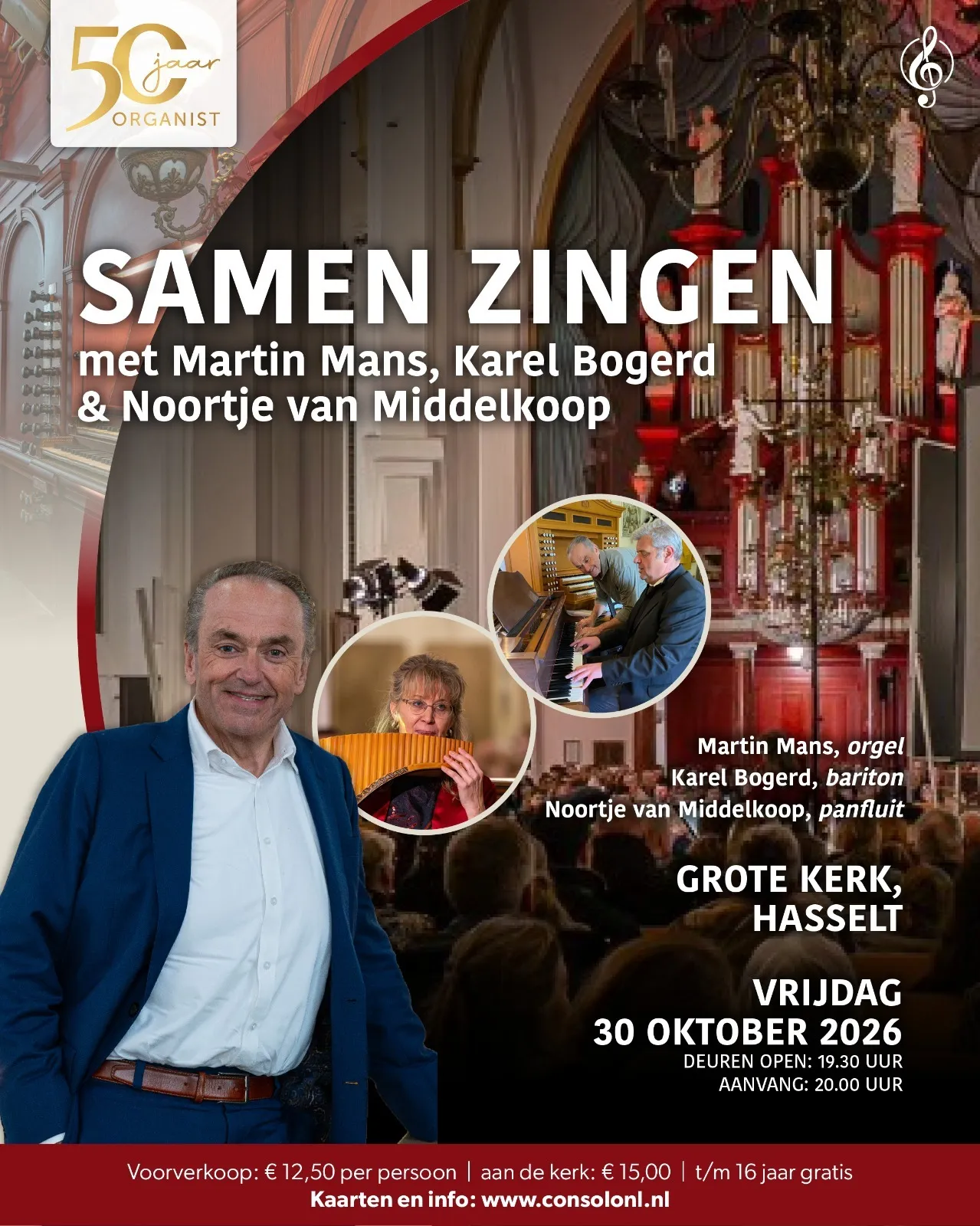 Samen zingen met Martin Mans, Karel Bogert & Noortje van MiddelkoopKerk open: 19.30 uur.Entree: € 15,00 Voorverkoop 12,50 Jongeren t/m 16 jaar gratis Tickets voorverkoop bestellen: Klik hier Medewerkenden: